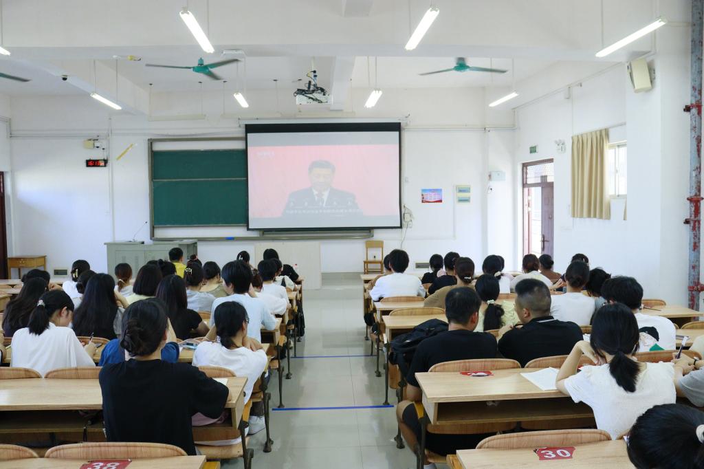 9月4日下午,2024年高校党组织示范微党课(第二阶段)第1讲《坚持教育科技人才“三位一体”,奋力谱写中国式现代化宏伟篇章》首播,必威西汉姆联组织教师与学生党员在弘毅楼2-401教室开展微党课学习活动。