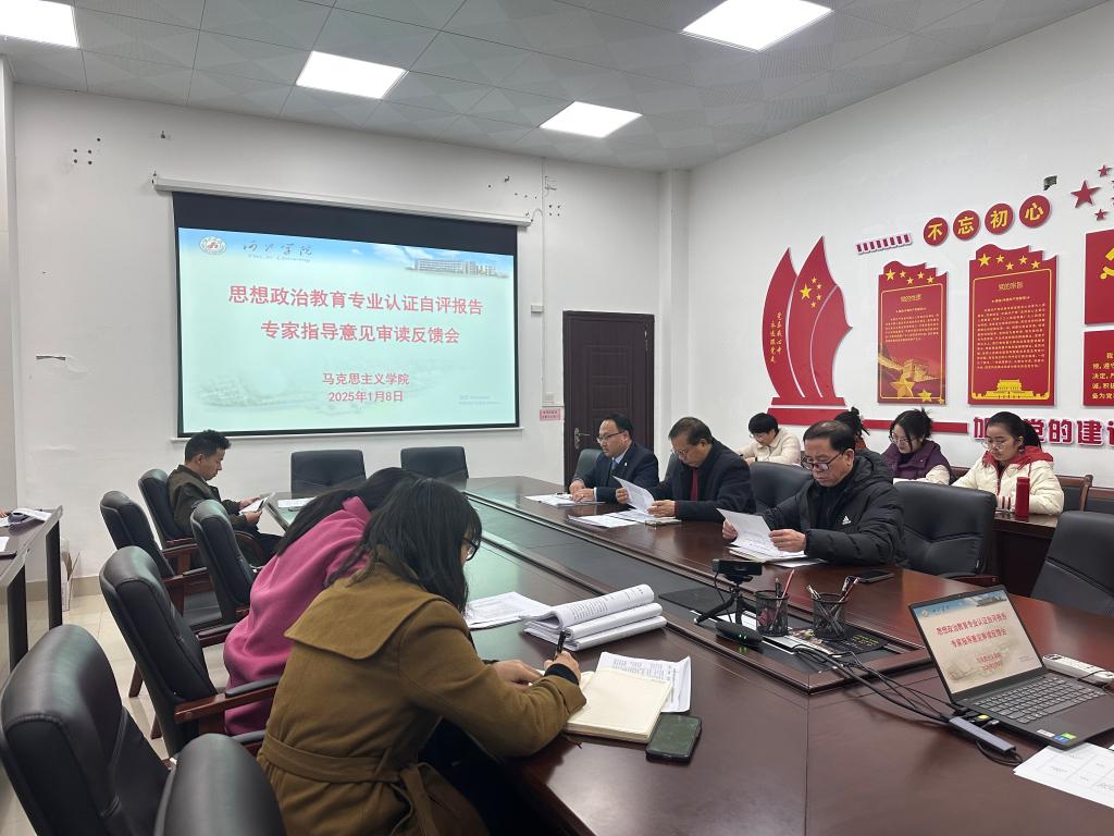 为进一步完善优化思想政治教育专业认证支撑材料,必威西汉姆联1月8日下午在弘毅楼2-208会议室召开思想政治教育专业认证自评报告专家指导意见审读反馈会,学院领导、各教研室主任、办公室老师参加,韦宏思副院长主持。