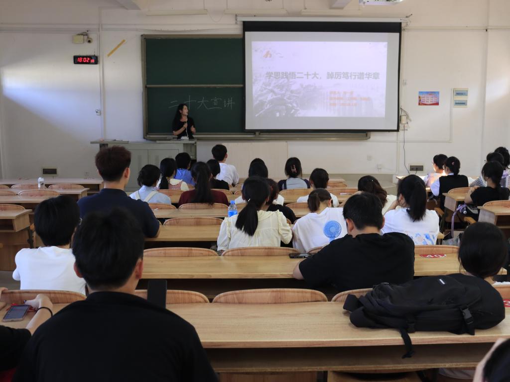 活动过程中,宣讲人围绕“学习党的二十大,筑梦新时代”的内容进行宣讲,引导学生们深入学习、认识党的二十大的内容及意义,将党的二十大描绘的宏伟蓝图与当代大学生的理想信念相结合,激发当代大学生的爱国情怀和使命感,倡导学生以青春之名,担时代之责,筑梦新时代。