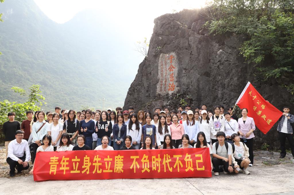 走在罗城“于公”古道上,立足于公旧刻前,师生们听取罗城仫佬族自治县党校老师介绍清朝一代廉吏于成龙在治理匪患、发展农业生产、创办学堂、教化民风等为官善治的故事,探寻于成龙廉洁文化形成的缘由,积极借鉴我国历史上优秀廉政文化,增强青年学生的廉洁意识,增强拒腐防变和抵御风险的能力。