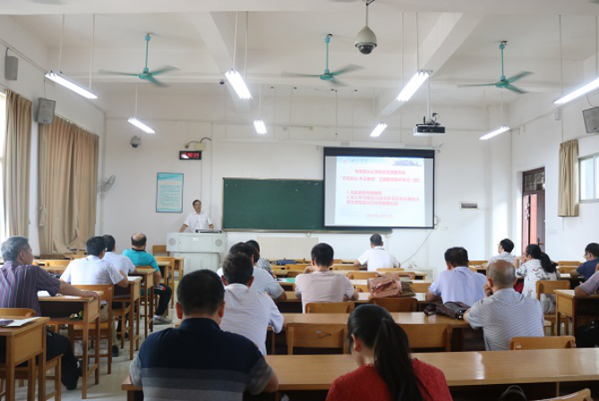 10月9日下午,我院党总支部在弘毅楼3-401开展“不忘初心、牢记使命”主题教育集中学习。学院领导韦建益、江洪明、韦少雄、牙远波以及全体老师出席会议,党总支部书记韦建益主持会议。