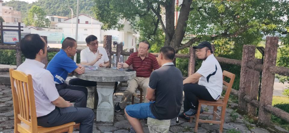 韦安光书记与改革先锋“基层群众自治制度的探索者”——合寨村第一任村委会主任韦焕能进行了交流,了解合寨村村民自治40年来的发展成就以及在乡村治理方面的好经验、好做法。合寨村村委会主任兰锋介绍了近期合寨村产业发展和乡村振兴战略实施情况,希望学校能为合寨村的发展献策助力。