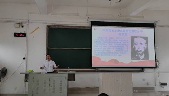 首先,江洪明从理论和现实的角度强调了党史学习的重要性,表达了学院对党史学习教育的重视;其次,江洪明以“勿忘昨天、无愧今天、不负明天”为题,运用丰富的案例,从认真把握党史学习教育的总体目标、深刻领会习近平总书记关于党史学习教育的重要论述、全面了解党的百年奋斗光辉历程和历史性贡献、深刻把握开展党史学习教育的重点、学懂弄通做实习近平新时代中国特色社会主义思想等五个方面进行了深刻的阐述;最后,他指出党史学习教育要稳步推行下去,全体教师要有责任感和使命感,鼓足干劲,力争上游,推动我院高质量发展。