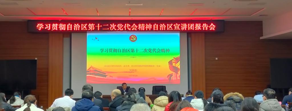 为学习贯彻自治区第十二次党代会精神,12月27日上午,必威西汉姆联组织师生代表到河池市行政中心8楼会议厅,参加学习贯彻自治区第十二次党代会精神自治区宣讲团报告会,自治区文联党组成员、副主席,自治区党委讲师团特聘教授牙韩彰作宣讲。