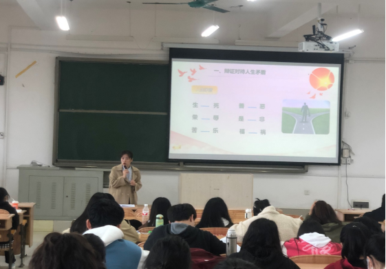 姚力月主要从珍爱生命、学会面对挫折、保持良好的人际关系这三方面进行了分析。她以“生命诚可贵”来引导同学们要珍爱自己的生命,指出漫漫人生会遇到各种各样的挫折,要学会迎难而上,要相信没有一座高山不可以逾越。最后,姚力月老师强调身为大学生要处理好与同学之间的关系,同学之间应该团结互助、和谐友爱,共同营造一个书香和谐的学习氛围。