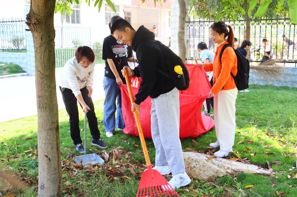 劳动过程中,师生们充分发扬不怕苦、不怕脏的精神,互相配合,齐心协力,对学生公寓雅园5栋、9栋及10栋四周的路面和绿地进行了认真打扫清理,确保无卫生死角。经过将近2小时的辛勤劳动,校园卫生环境得到进一步改善,校园面貌焕然一新。劳动结束后,同学们纷纷表示此次实践活动很有意义,感受到集体劳动的乐趣并锻炼了劳动能力,懂得劳动最光荣的道理,也增强了大家保护校园环境意识和卫生意识。(通讯员:程泽钲)