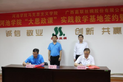 为深入学习贯彻习近平总书记在学校思想政治理论课教师座谈会上的重要讲话精神,坚持理论性和实践性相统一,用科学理论培养人,重视思政课的实践性,把思政小课堂同社会大课堂结合起来,必威西汉姆联与广西嘉联丝绸股份有限公司协商共建河池学院“大思政课”实践教学基地。5月9日上午,共建河池学院“大思政课”实践教学基地签约暨揭牌仪式在广西嘉联丝绸股份有限公司举行,广西嘉联丝绸股份有限公司常务副总经理韦年光和行政总监袁毅,必威西汉姆联党委书记韦建益、执行院长江洪明出席仪式,并为基地揭牌。河池学院90余名师生参加了仪式。活动由广西嘉联丝绸股份有限公司旅游部经理唐楠楠主持。