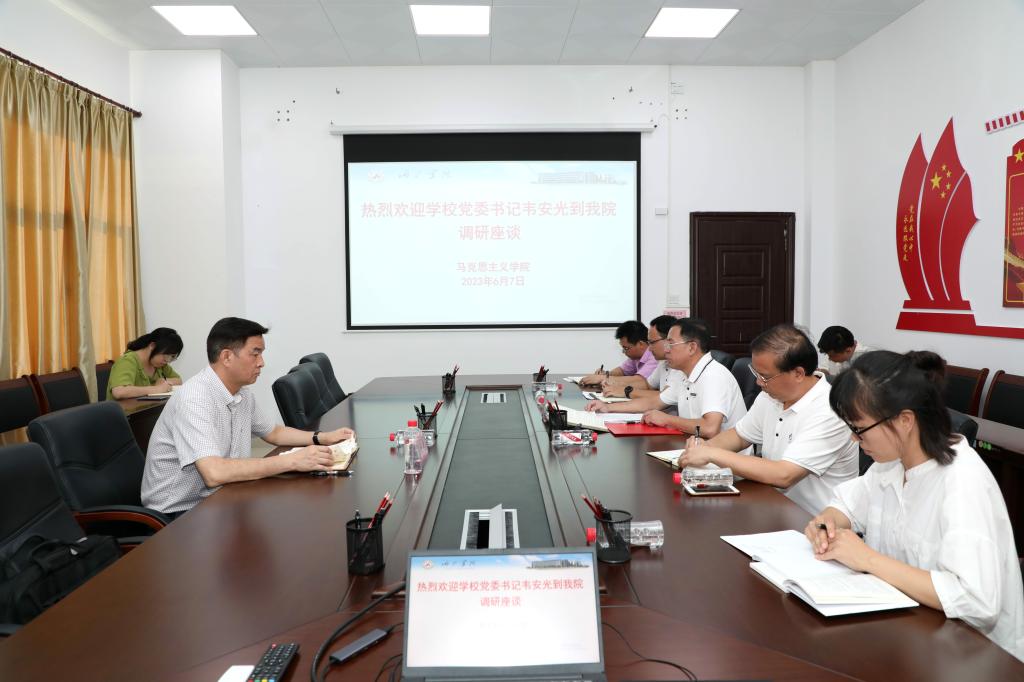 6月7日,学校党委书记、必威西汉姆联院长韦安光到必威西汉姆联调研指导工作。必威西汉姆联党委班子成员参加座谈会。